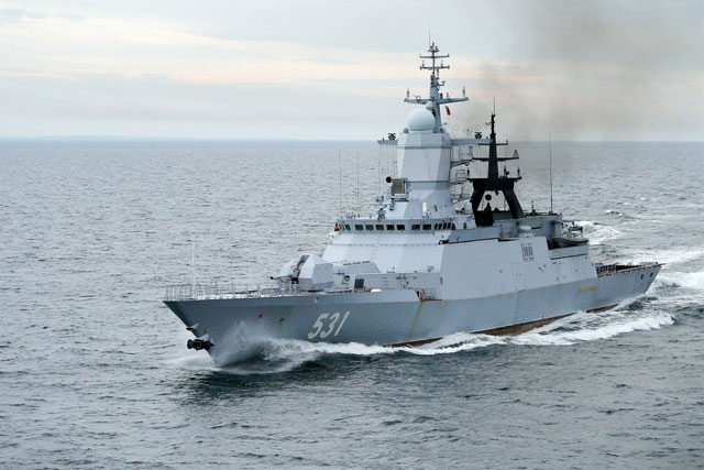 Frigate Đô đốc Makarov lớp Projekt 11356 được hạ thủy tại Nhà máy Yantar vào tháng 2/2012, hạ thủy ngày 2/9/2015. Đây là tàu thứ ba của lớp này. Hai tàu trước đó là Đô đốc Grigorovich và Đô đóc Essen đang hoạt động trong biên chế Hạm đội Biển Đen. Các tàu lớp này dùng cho các cuộc hành quân trên biển đường xa, chống khủng bố và tàu ngầm, đánh trả các cuộc không kích. Vũ khí của tàu gồm 1 ụ pháo 100 mm А-190, các hệ thống tên lửa và pháo phòng không, các ngư lôi và vũ khí chống ngầm, cũng như các tên lửa hành trình tầm xa Kalibr-NK. Đô đốc Makarov có thể tiếp nhận lên boong 1 trực thăng Kа-27 hoặc Kа-31.